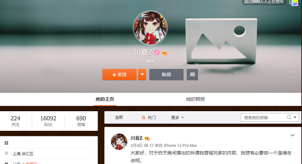我们聊聊王者荣耀里的GFF,这个皮肤设计师因为锚点问题出了名。很多人好奇GFF是谁,到底是什么意思。其实GFF就是关菲菲,王者荣耀里的关菲菲。她的微博叫川夏Z,大家可以去搜搜看。(图片链接:关菲菲微博)