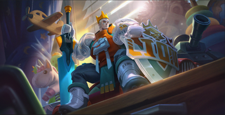 - 亚瑟皮肤是一级战令的【潮玩骑士王】,挺可爱的。