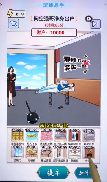 这关叫玩梗高手,强哥得躺平发育,看着挺悠闲,其实是要掏空强哥净身出户。我们来看看怎么操作吧。